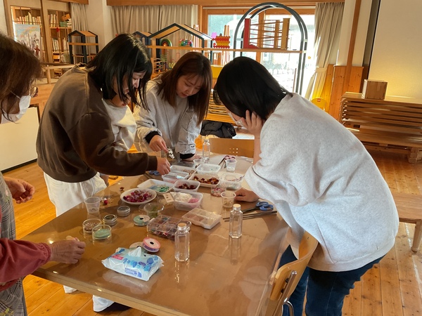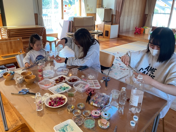 | ハーバリウムを作りました☆何色にしよ〜どんなの入れようかな〜とお母さんたちも悩みながら、楽しまれていました。 子ども達も、お母さんのマネをして瓶に入れてみたり、楽しんでいました♪ 今年も残すところ数回ですが、お仕事復帰の方もいらっしゃるので、それまで育休ライフが楽しめるようにしていきたいなと思います♡ |