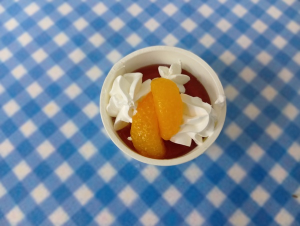 | 給食 擬製豆腐 サツマイモのサラダ 牛肉とレンコン炒め煮 オレンジ おやつ 杏仁豆腐 |