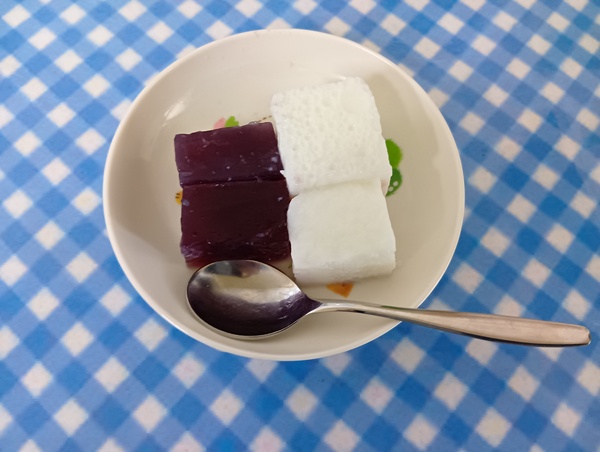 | 給食 豚汁うどん わかめサラダ ちくわのマヨネーズ焼き オレンジ おやつ 二色かんてん |