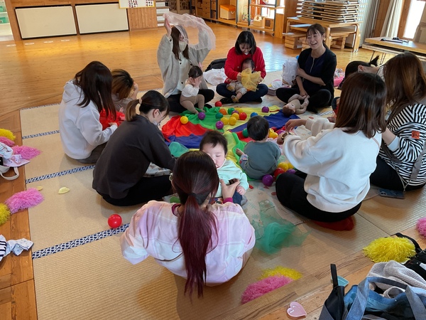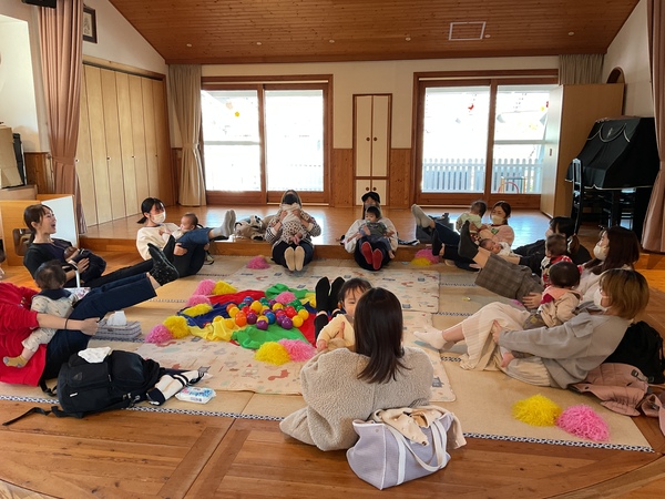 | 助産師さんに来て頂き、今年度2回目のベビーマッサージ。わらべ歌やふれあい遊びもたくさん楽しみました。 お母さんとのスキンシップの時間をゆっくりのんびりと楽しめました♡ |