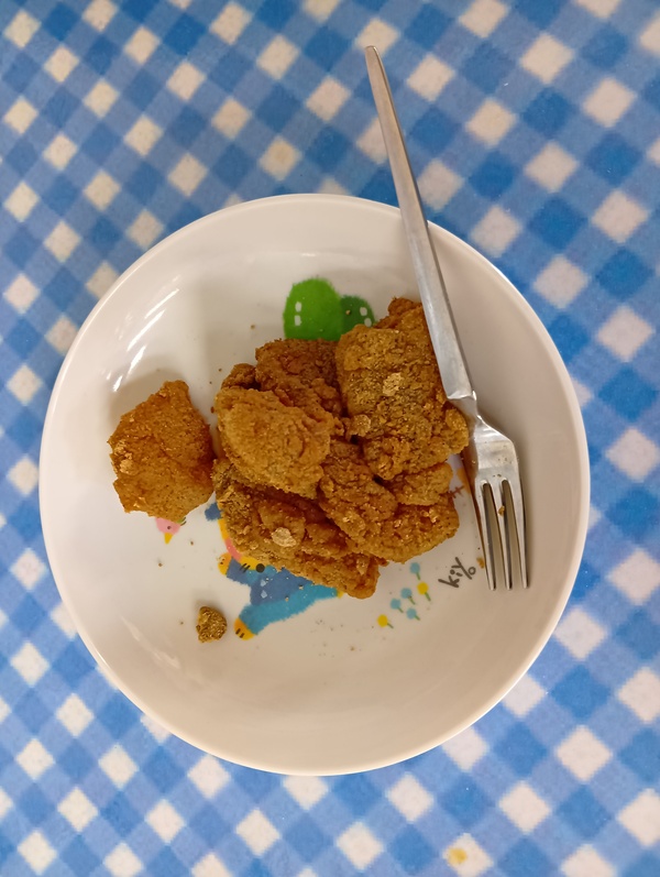 給食 カレーうどん 中華風サラダ たらこポテト りんご おやつ 南瓜ケーキ |