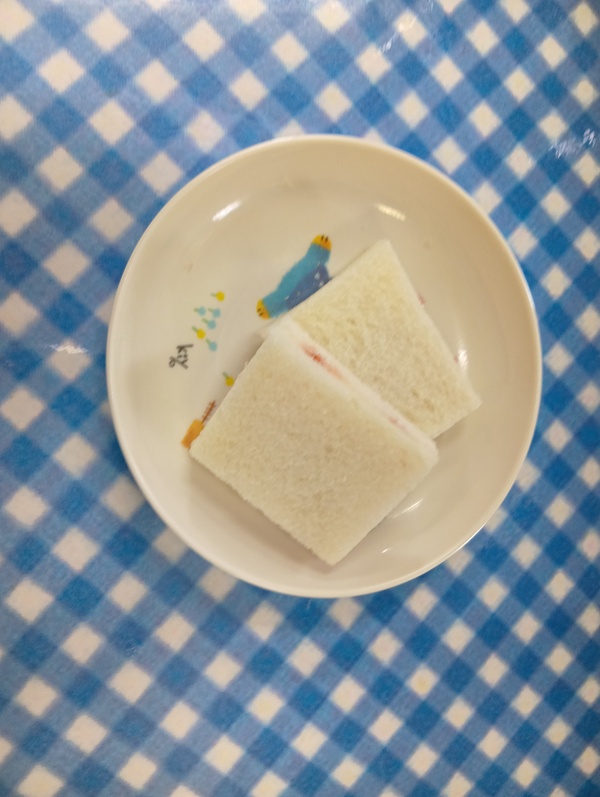 給食 スタミナ炒め スパゲティサラダ 味噌汁 オレンジ おやつ ジャムサンド |